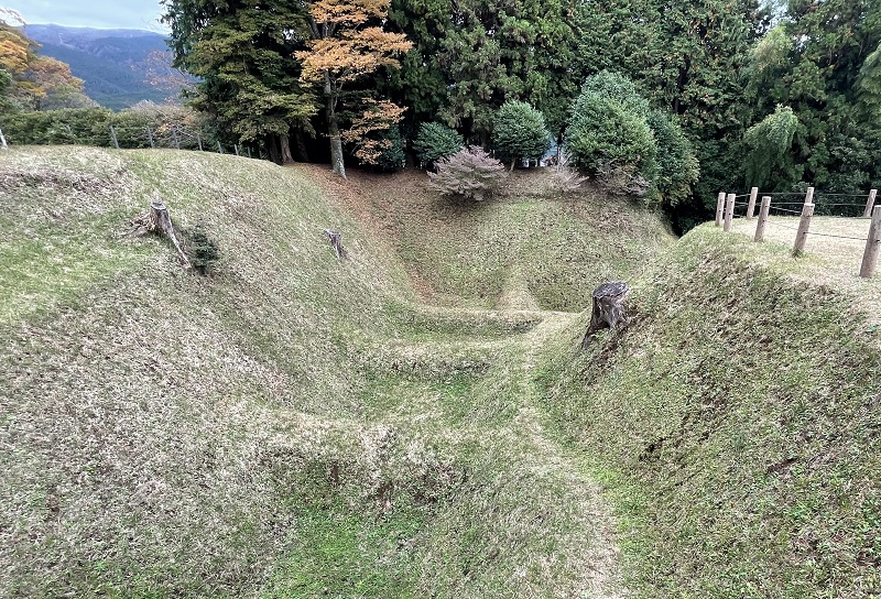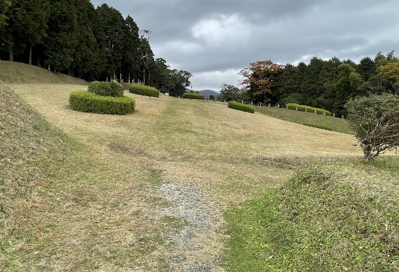 「二ノ丸虎口」。南側へ傾斜してますね。