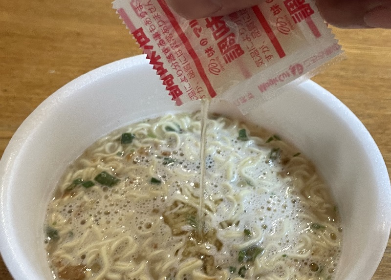 口の中で少し暴れる感じがインスタント麺という感じ。美味しいです。