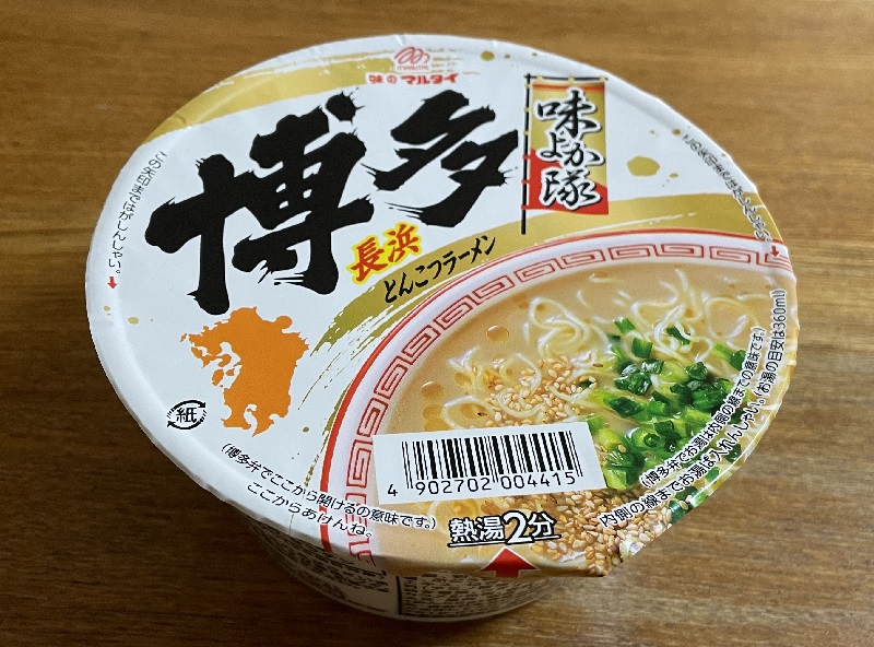 棒ラーメンの【マルタイ】から発売されているカップ麺シリーズ、「味よか隊」の【博多 長浜 とんこつラーメン】を食べてみました。