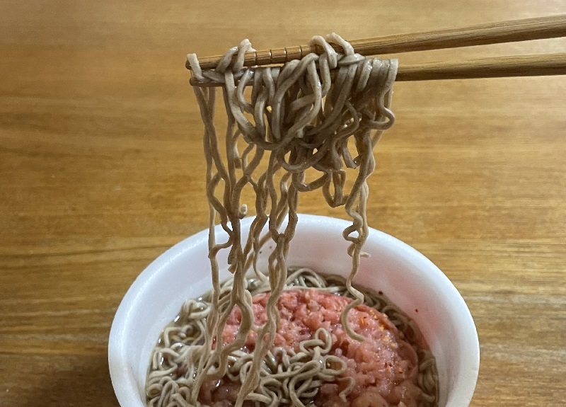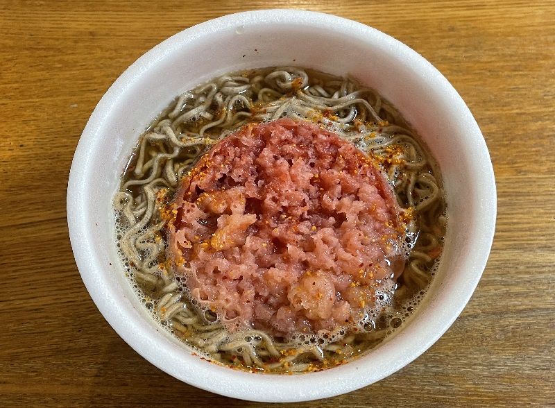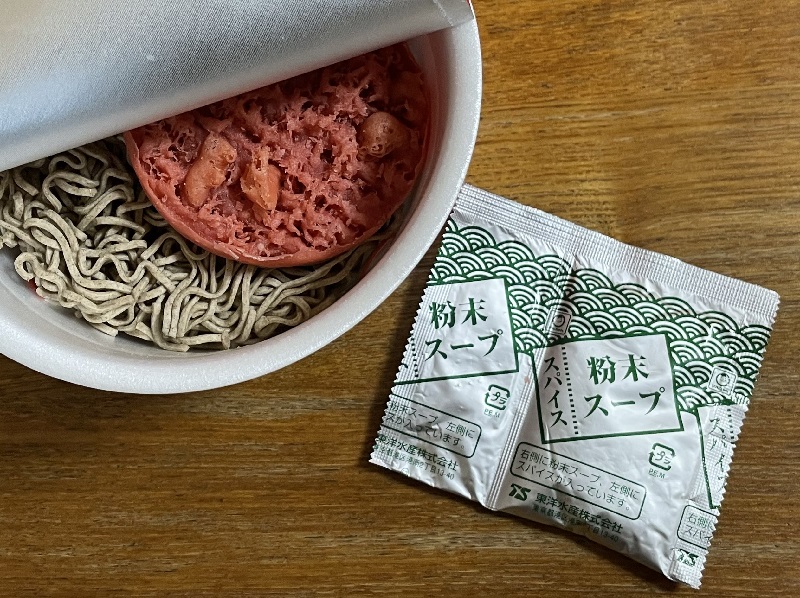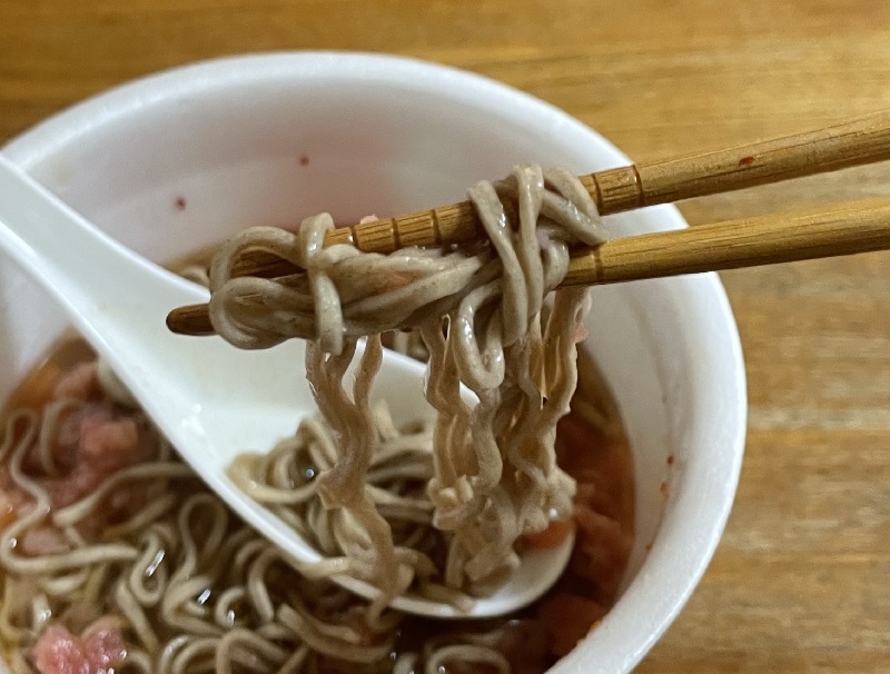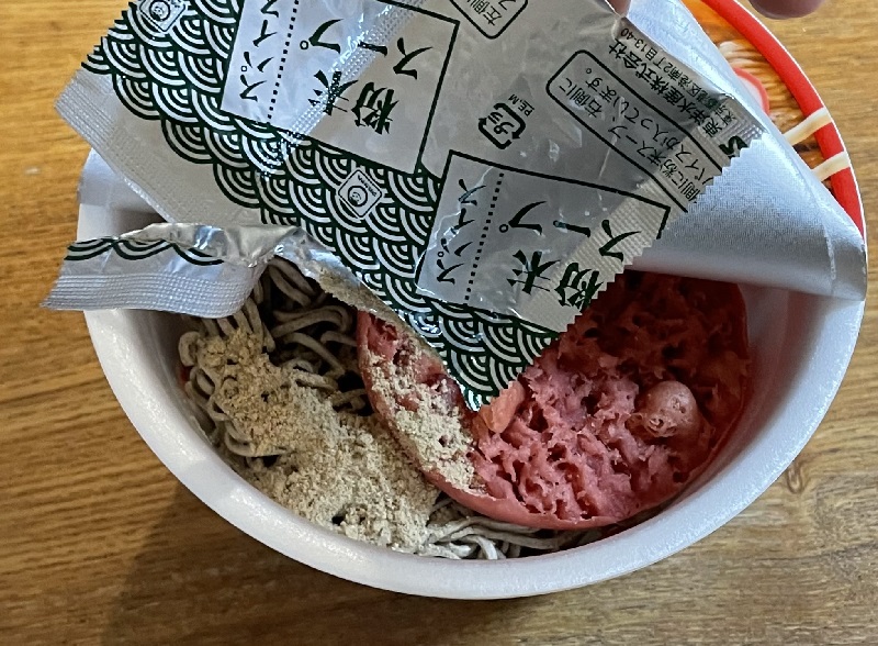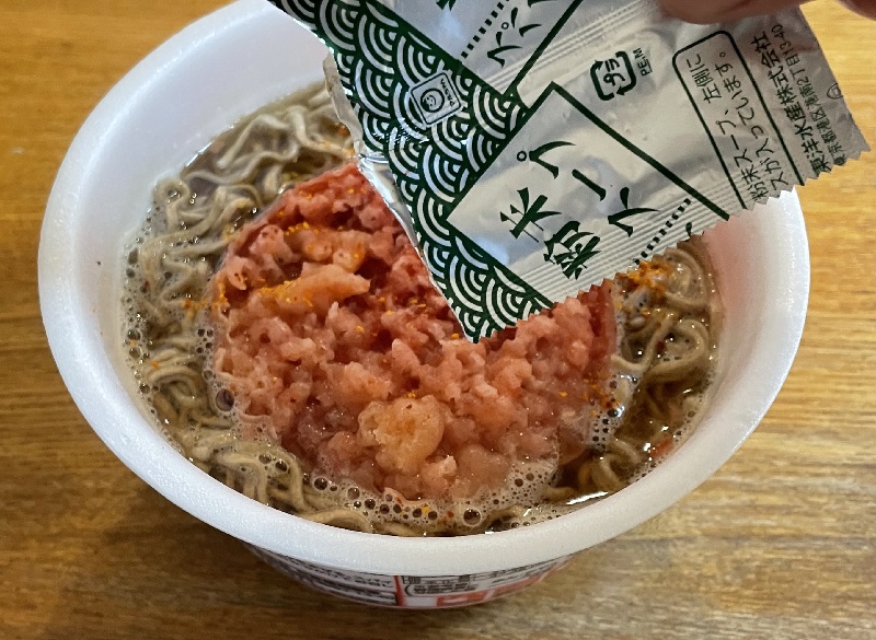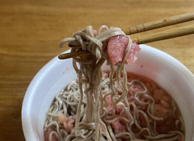 ベースは「緑のたぬき」のそれですが、紅生姜の風味が染み込んでいて、よりサッパリしています。