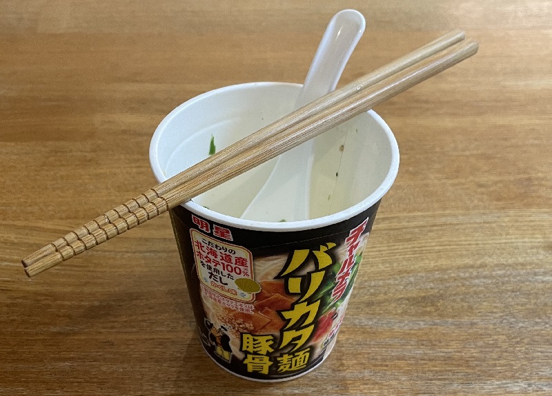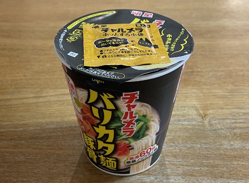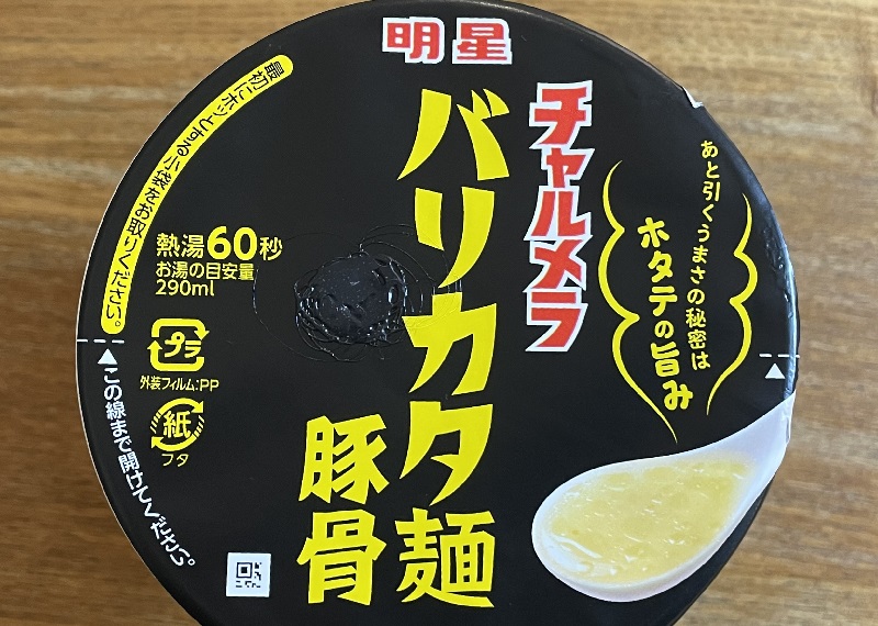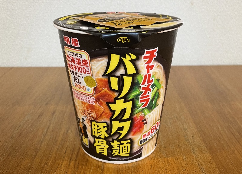 明星食品「チャルメラ」シリーズの【バリカタ麺 豚骨】。袋麺の方は美味しくて、何度も食べていますが、タテ型カップ麺も発売されていたので買ってみました。