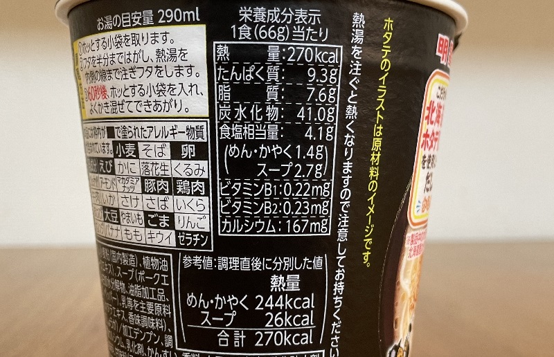 カロリーは270kcal、炭水化物41.0g、塩分4.1g。割と軽め。