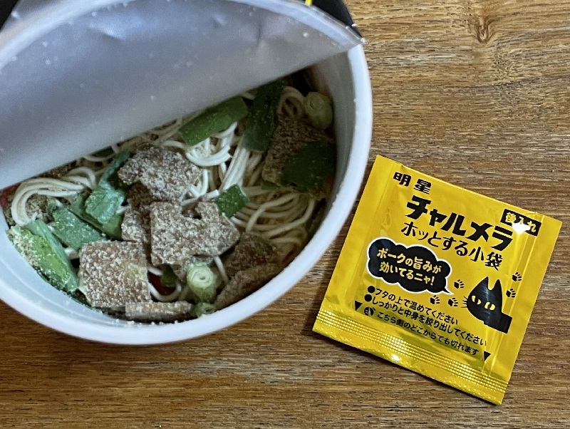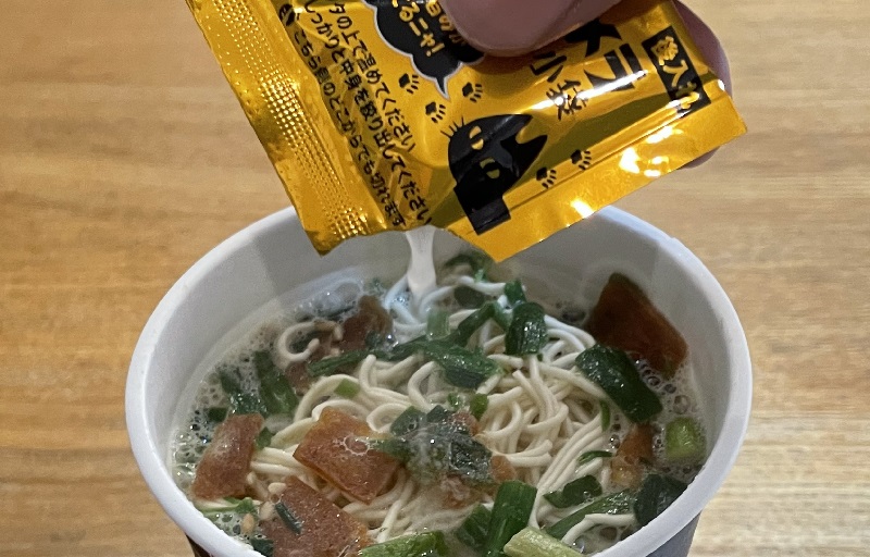 具材とスープは、麺に混ざってます。後入れのポークオイルが添付。