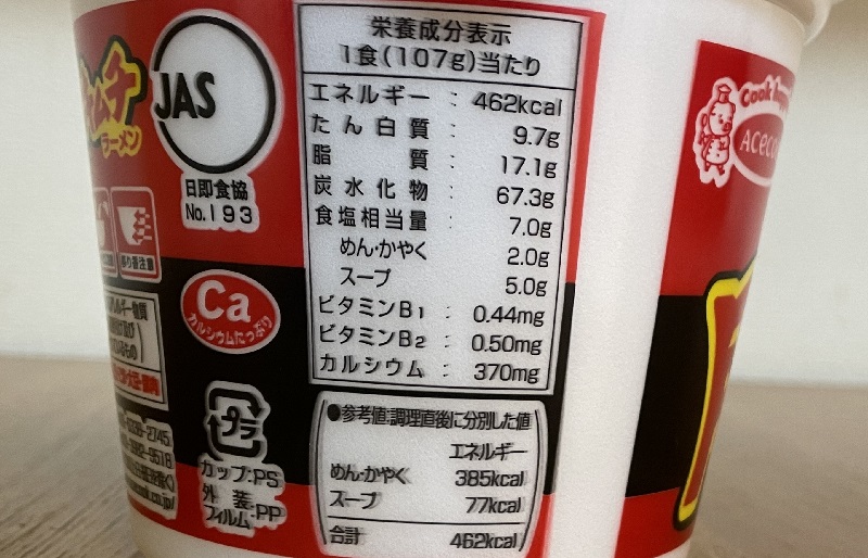 カロリーは462kcal、炭水化物67.3g、塩分7.0g。