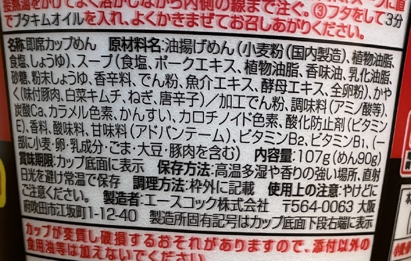 ちなみに、コンビニ限定の【ブタキム】は、かやくの量がもう少し多い。