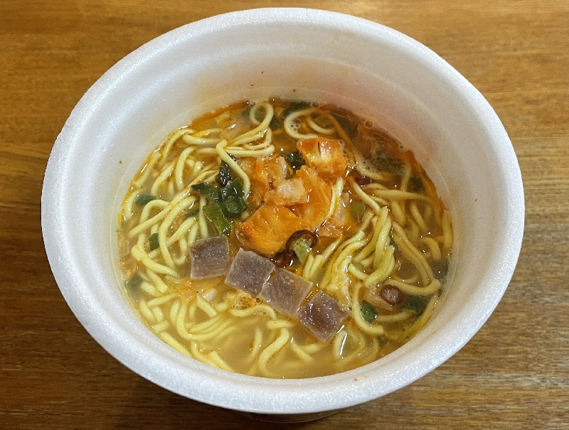 【完成】です。エースコック【スーパーカップ 豚キムチラーメン】出来ました。