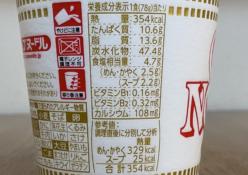 カロリー354kcal、炭水化物47.4g、塩分4.7g。