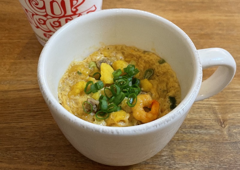 カップヌードルの残り汁でつくる「茶碗蒸し」が美味しいらしいので、やってみました。