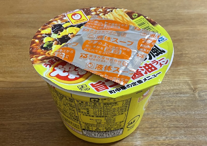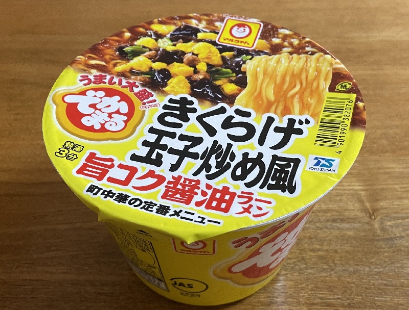 東洋水産・マルちゃんの大盛カップ麺シリーズ「でかまる」の新商品。【きくらげ玉子炒め風旨コク醤油ラーメン】です。