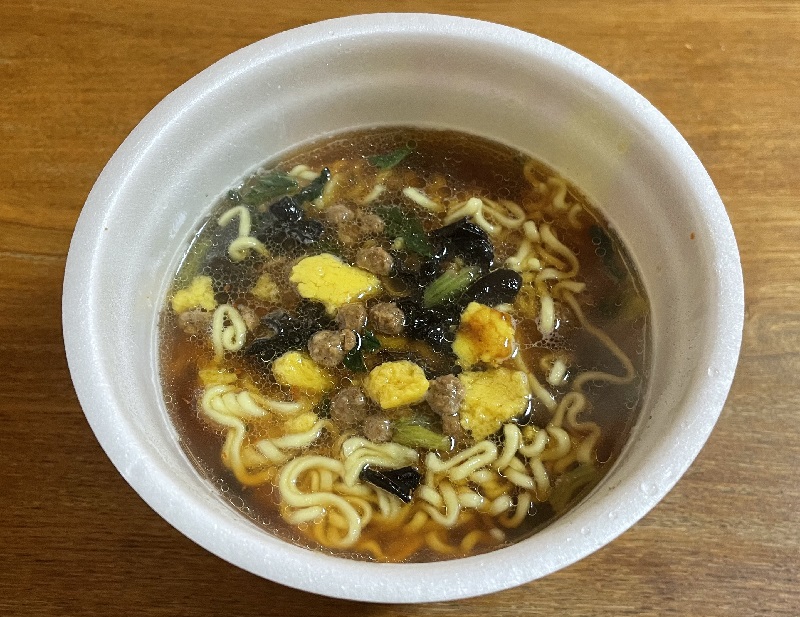 【完成】です。マルちゃん【でかまる きくらげ玉子炒め風旨コク醤油ラーメン】出来ました。