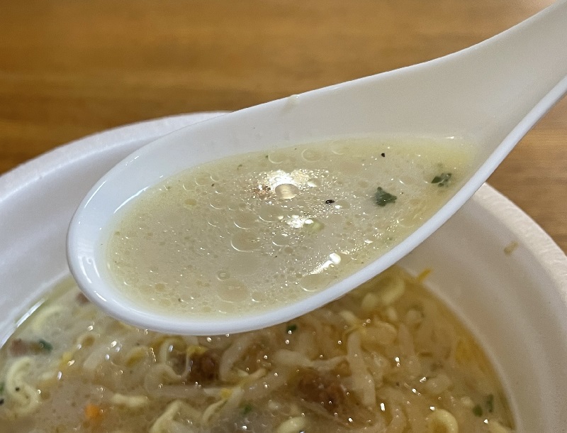 ではいただきます。まずはスープをひと啜り、
