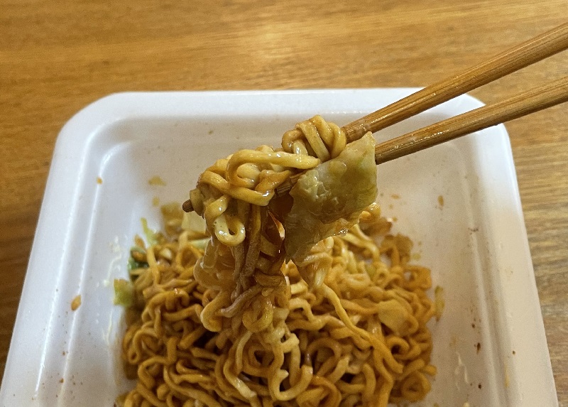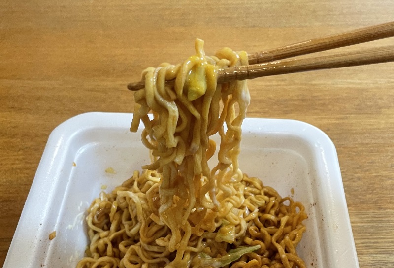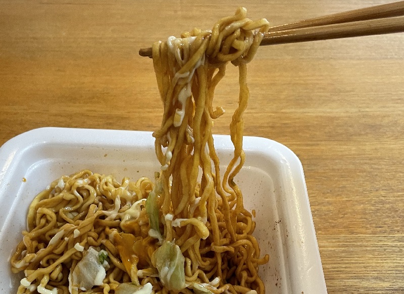 おー、甘めの味付でジャンクな美味しさ。麺がもっちりしていてグッド。