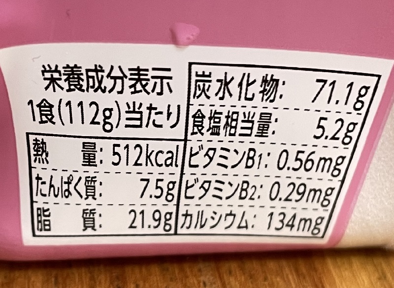 カロリーは512kcal、炭水化物71.1g、塩分5.2g。