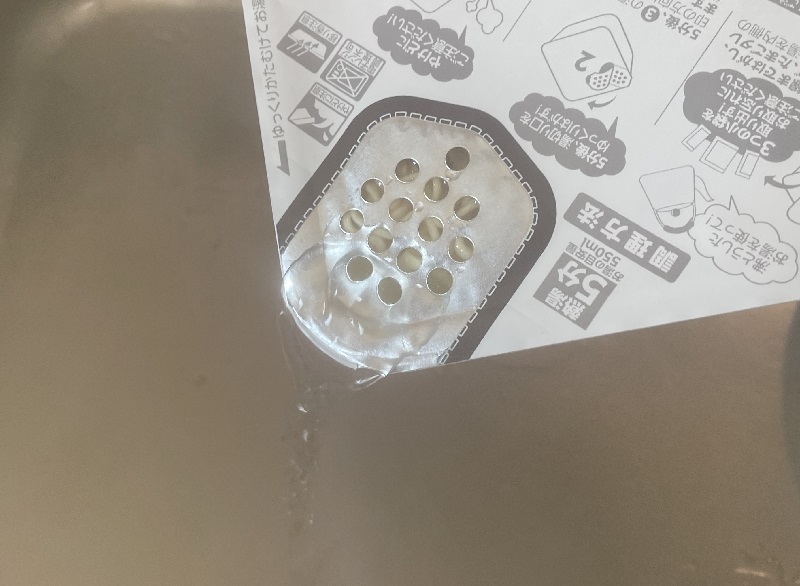 5分経ったら、お湯をしっかり切ります。