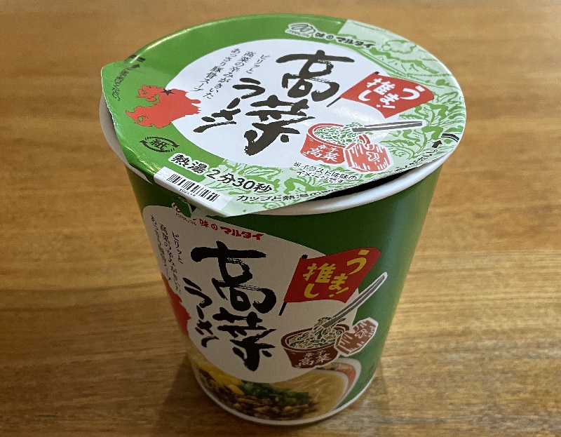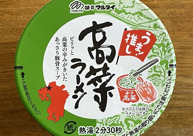 「棒ラーメン」の【マルタイ】から発売されているカップラーメン、【うま!推し 高菜ラーメン】を食べてみました。