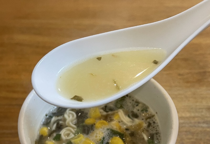 なるほど!かなりあっさりした豚骨スープに、辛さが控えめに効いてます。