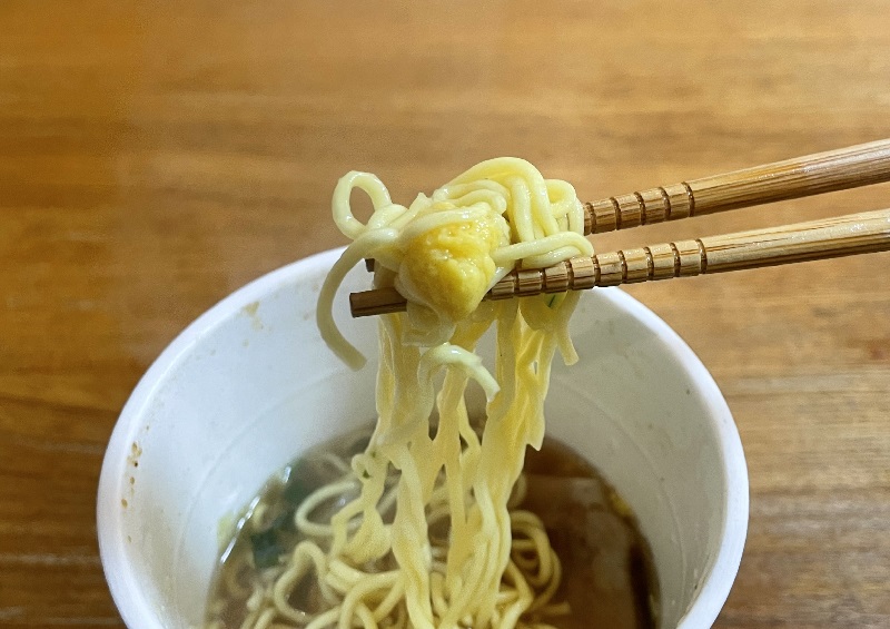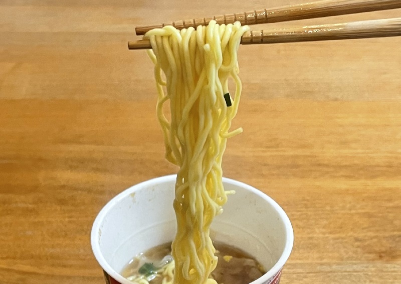 麺は安定の中細油揚げ麺。食べなれたタイプで安心感があります。