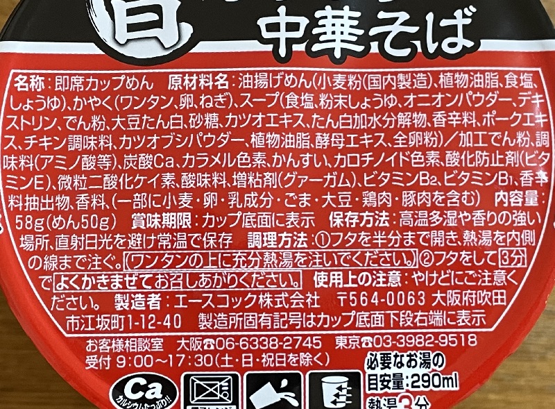 エースコックのタテ型カップラーメン、【まる旨 ワンタン中華そば】を食べました。