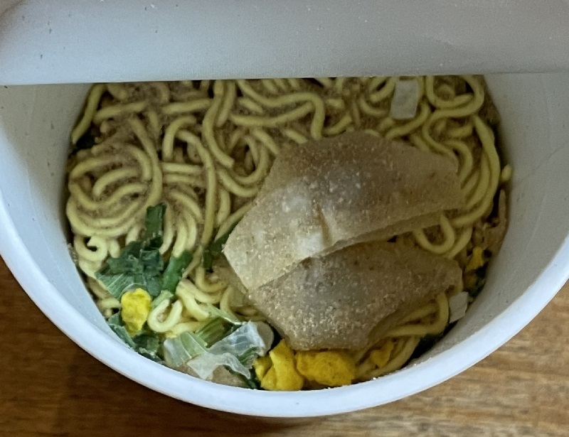 スープ、かやく類は全て麺に混ざっているシンプルタイプ。
