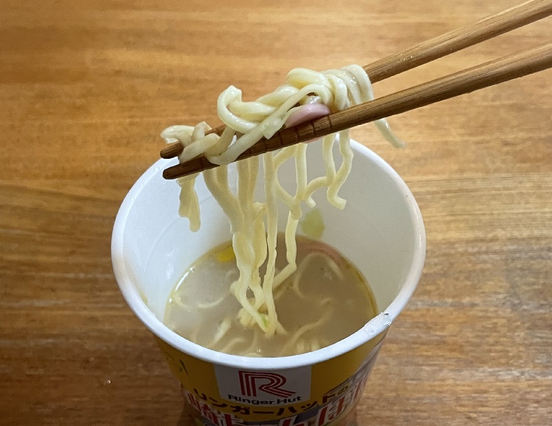ポークエキス・ベースの白濁スープはちゃんと「リンガーハット」しています。