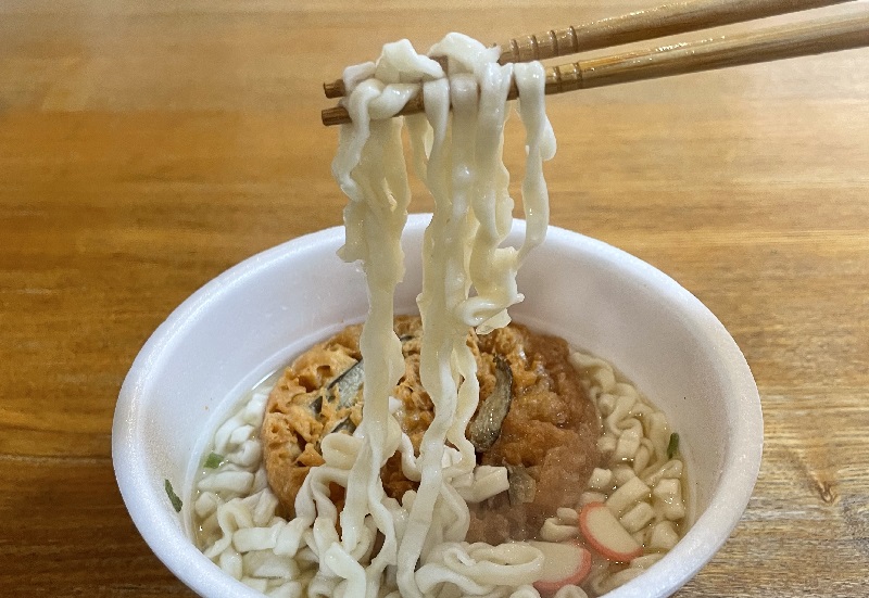 一般的なカップうどんの出汁とは確かに違いますね。美味しい。