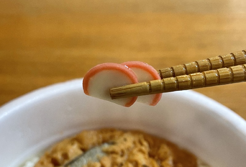 トッピングかやくは、「ごぼう天ぷら」と「かまぼこ」。