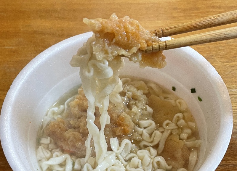一般的にうどんはお揚げ、そばは天ぷらのカップ麺が主流ですが、個人的にかき揚げとうどんの組み合わせが大好き。