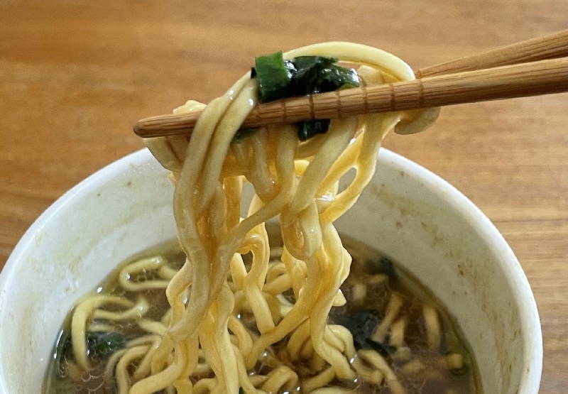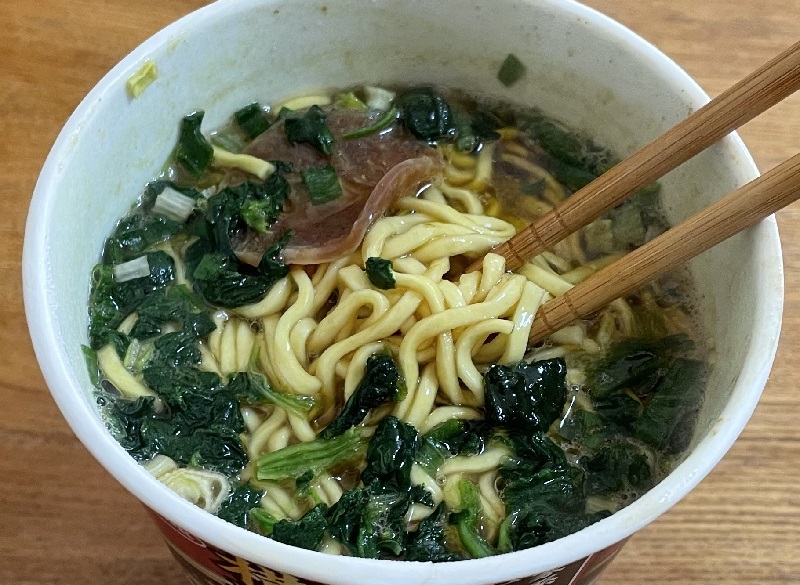 麺も中太平打ちの油揚げ麺で、けっこう頑張ってます。スープの持ち上げがいい。