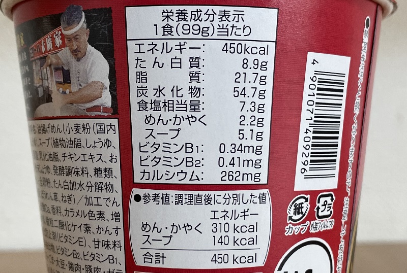 カロリーは450kcal、炭水化物54.7g、塩分7.3g。ちょっと塩分多め。
