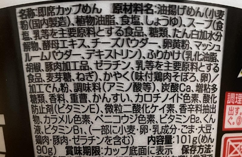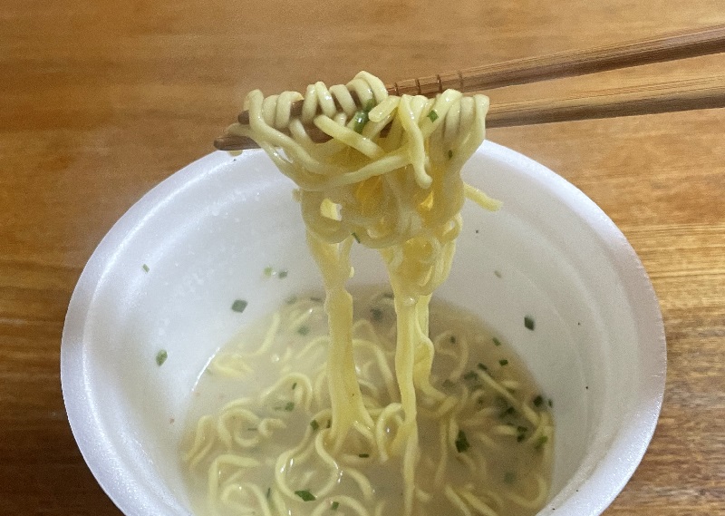 麺は、お馴染みのスーパーカップ麺。食べ応えのある奴ですが、パスタ味に割と馴染んでます。