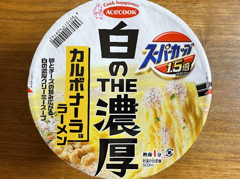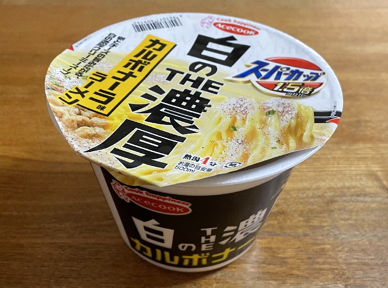 大盛カップ麺の雄、エースコック・スーパーカップの変わり種【白のTHE濃厚 カルボナーラ味ラーメン】を食べてみました。
