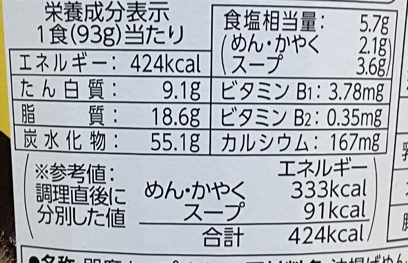 カロリーは424kcal、炭水化物55.1g、塩分5.7g。