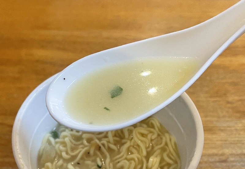 ではいただきます。まずはスープをひと啜り、