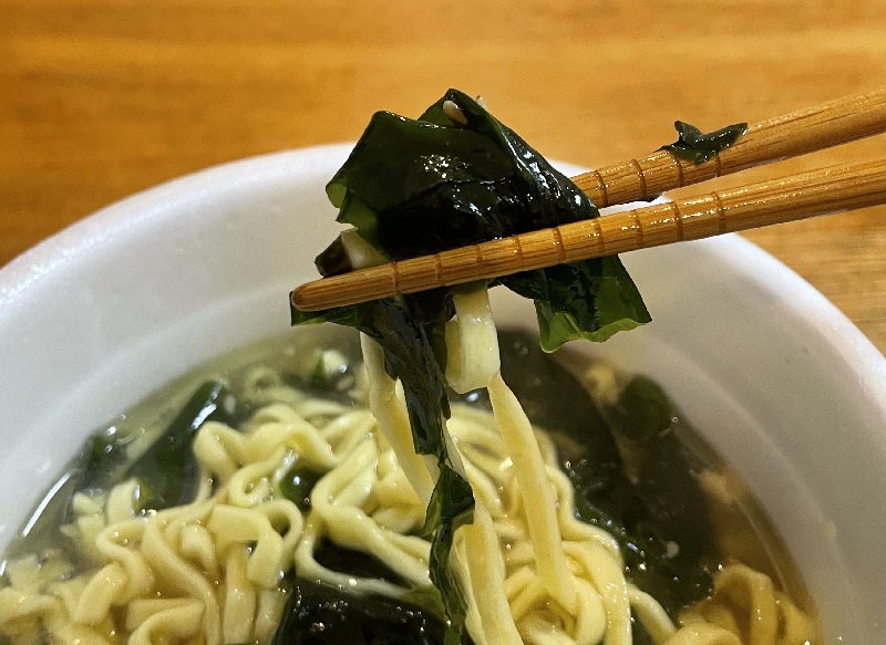 たっぷりと入った「わかめ」が「エースコックのエース」を主張。