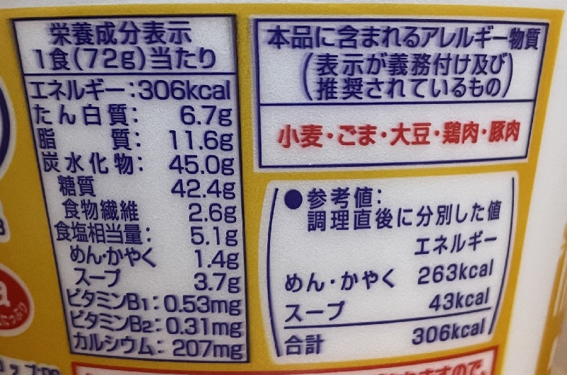 カロリーは306kcal、炭水化物45.0g、塩分5.1g。