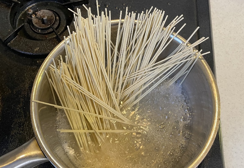 450㏄の熱湯(ちょっと少な目が好き)で3分茹でます。