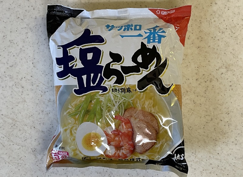 ご存じ、No1人気の袋麺、サンヨー食品【サッポロ一番 塩らーめん】です。