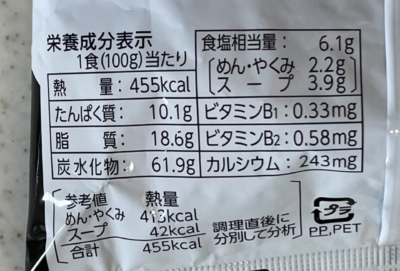 カロリーは455kcal、炭水化物61.9g、塩分6.1g。