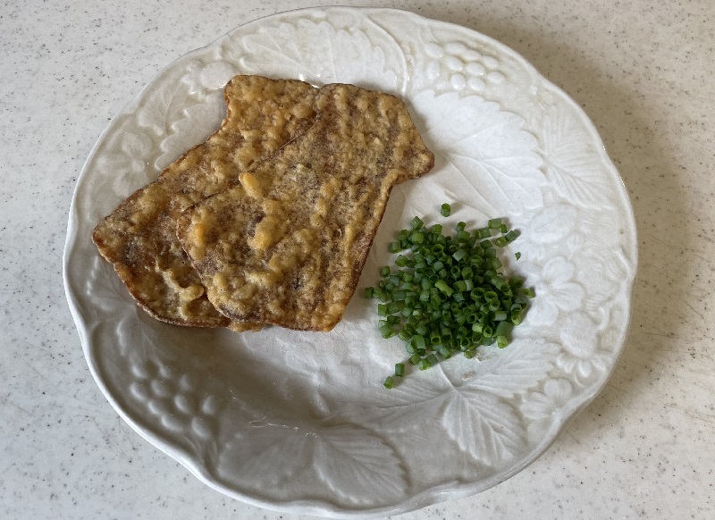 【いかフライ】2枚を使用予定。トッピングに小葱を用意しました。