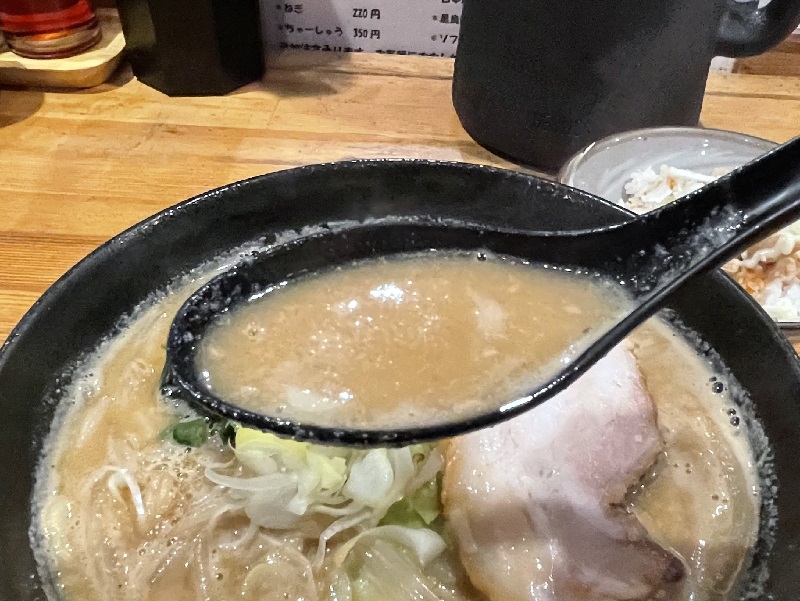 では頂きます。まずはスープをひと啜り、