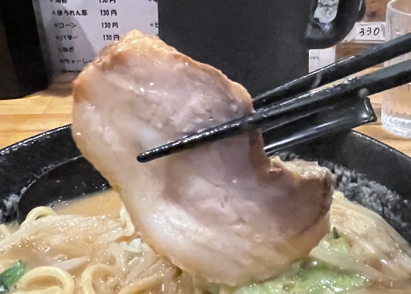 チャーシューは、結構な厚みがあってしっとりとしたタイプ。肉々さがいい。