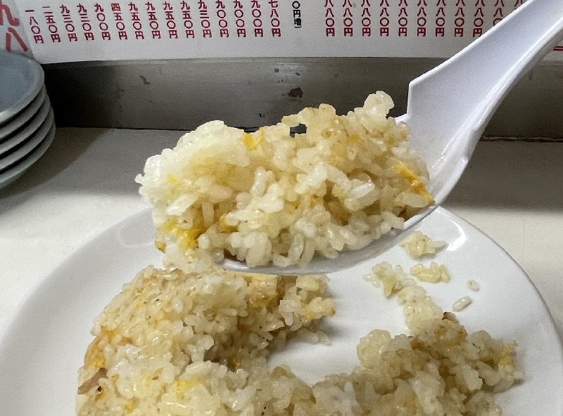 半チャーハンは、しっとりとした食感の家庭的なもの。
