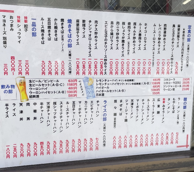 メニューは多数あり、町中華ということで看板メニューはチャーハン系ですが、