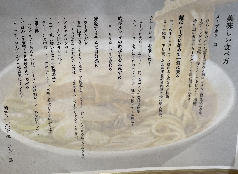 早速いただきます。「食べ方」通りに、まずはスープをひと啜り、