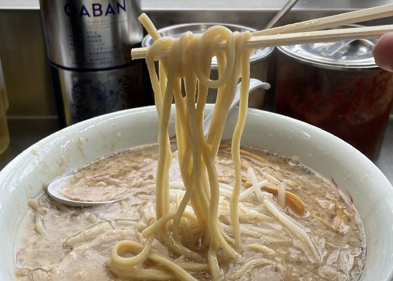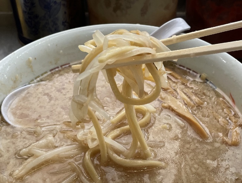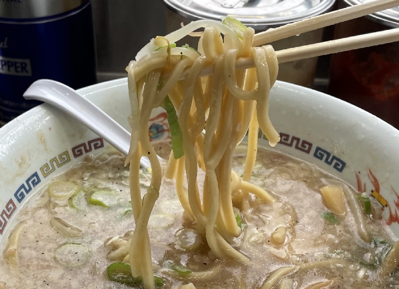 自家製の中太ストレート麺は、ガッツリとした食べ応え。