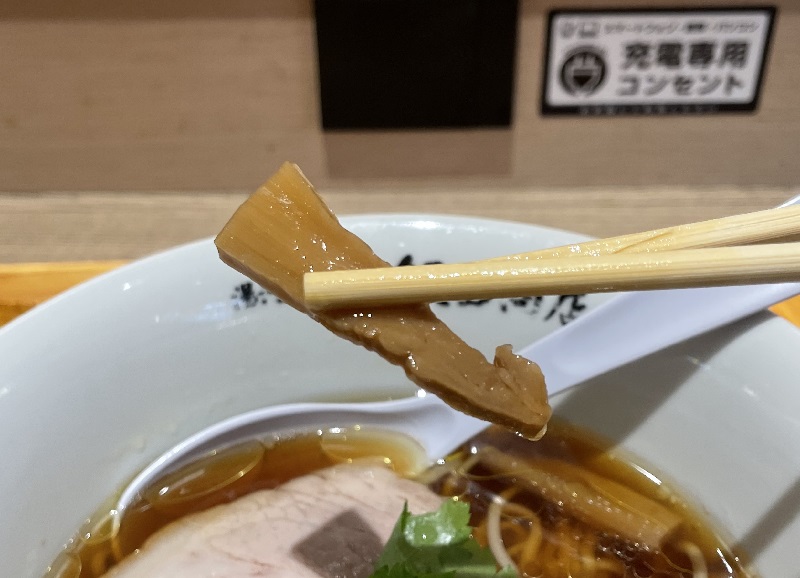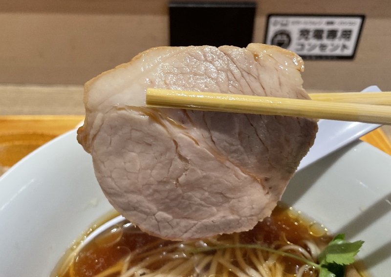 2枚ある大判の豚チャーシューはレア気味で、2種の部位が楽しめます。