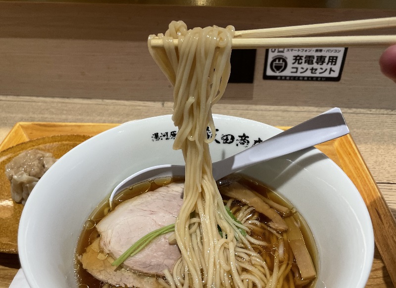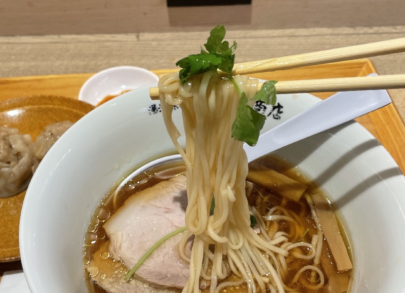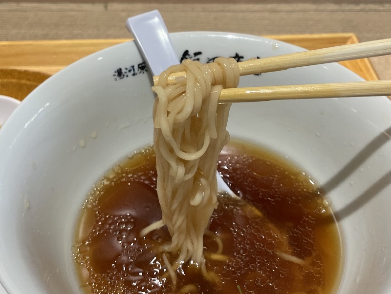 麺は柔らか目に茹でられた細平打ち。しなやかでスープをしっかかり纏ってくれます。