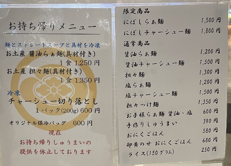 口頭注文先払いで、【醤油らぁ麺】1,200円と【手作りしゅうまい】390円をオーダー。