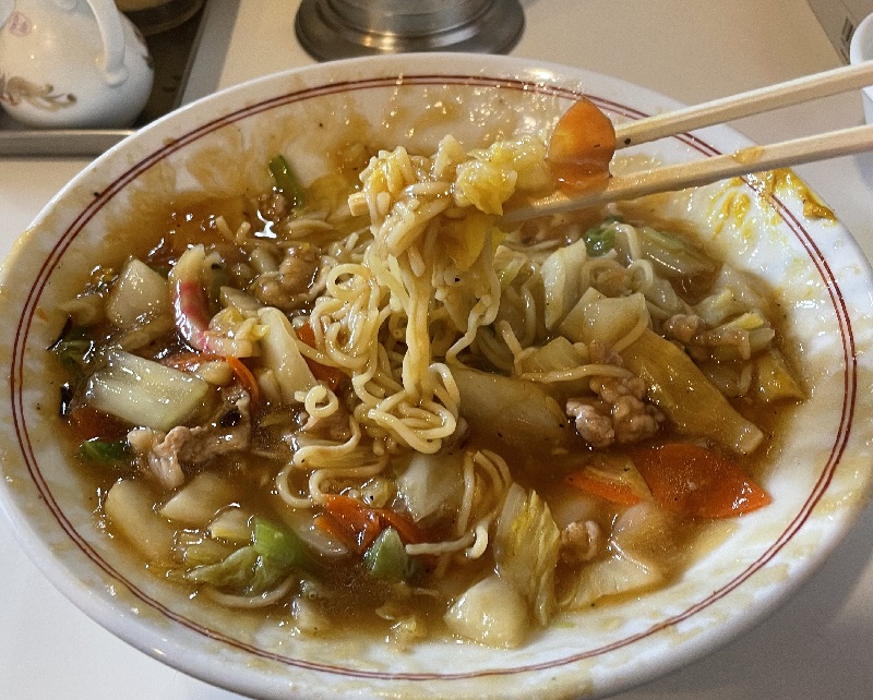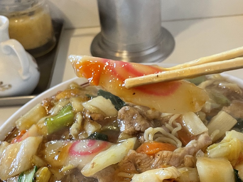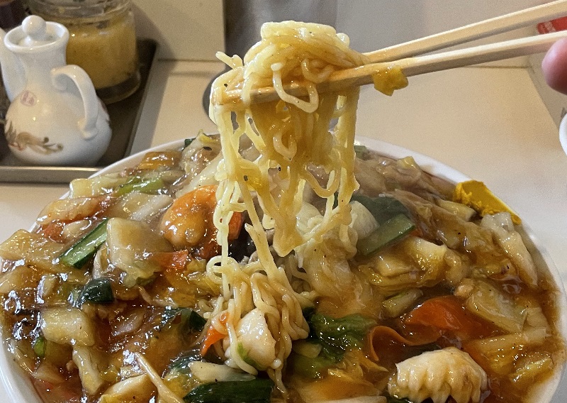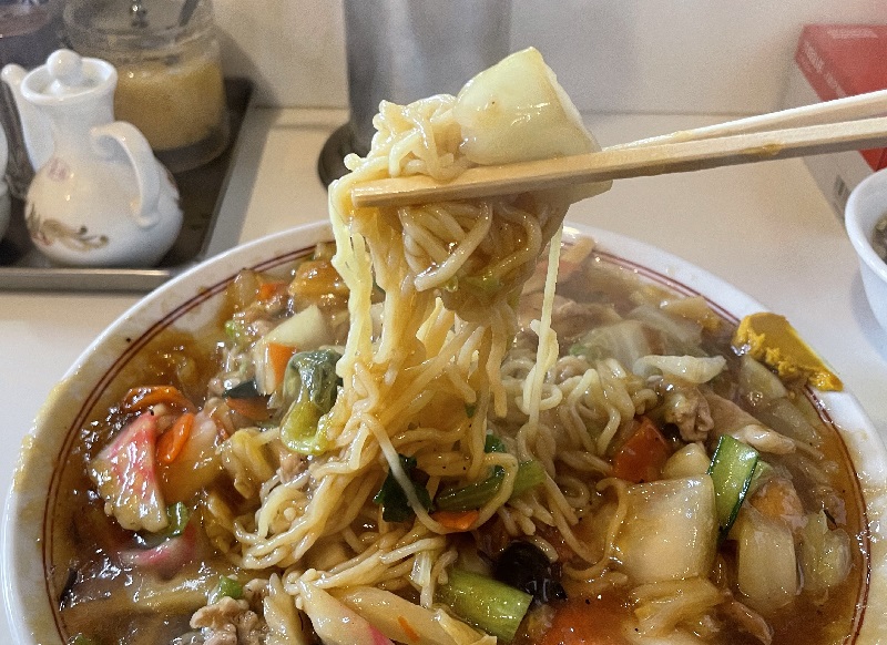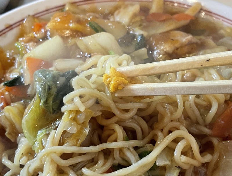 中細の中華麺は、トロトロの餡が絡みついていて旨い!