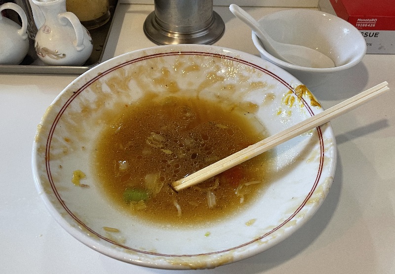 ベースは、スタンダードな中華スープながら、独特な香辛料が効いてます。美味しい。